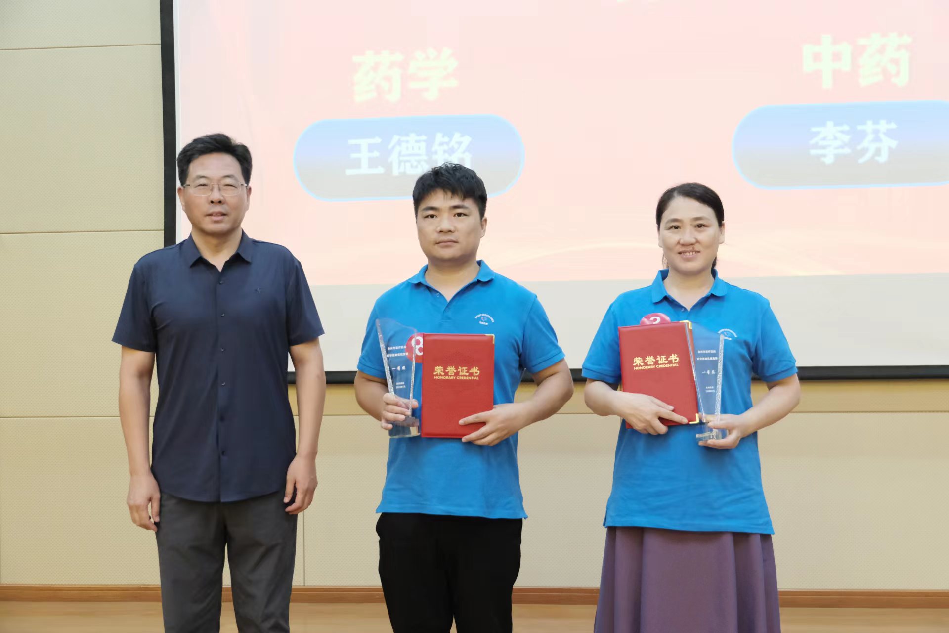 7月21日,由徐州市卫生健康委员会、徐州市总工会、徐州市药学会主办,我校承办的2023年徐州市医疗机构药学技能实践竞赛在我校成功举办。徐州市总工会副主席王建民、徐州市卫生健康委员会副主任杨洪涛、徐州中医药管理局副局长姜勇、校党委委员副校长赵虎、徐州市药学会理事长陈建民等出席并为获奖选手颁奖。我校药品食品学院100多名师生现场观摩学习,其中宋凯、吴江涛、于秋菊、蔡琳等四名教师执裁决赛阶段比赛。