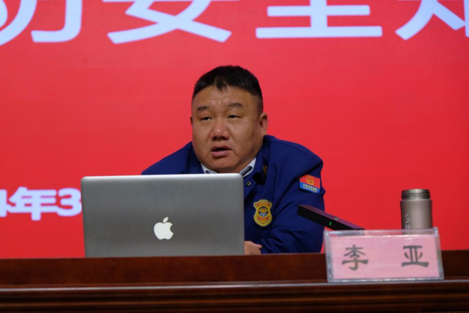 宣讲中,李亚大队长结合日常用电、用气、用火以及电动车引发的火灾案例,详细讲解了引起火灾的具体原因结合校园消防安全工作实际,针对食堂工作人员、学生宿舍管理人员等不同岗位,讲解了具体注意事项、防范措施和消防安全技能,让大家受益匪浅,取得较好的培训效果。