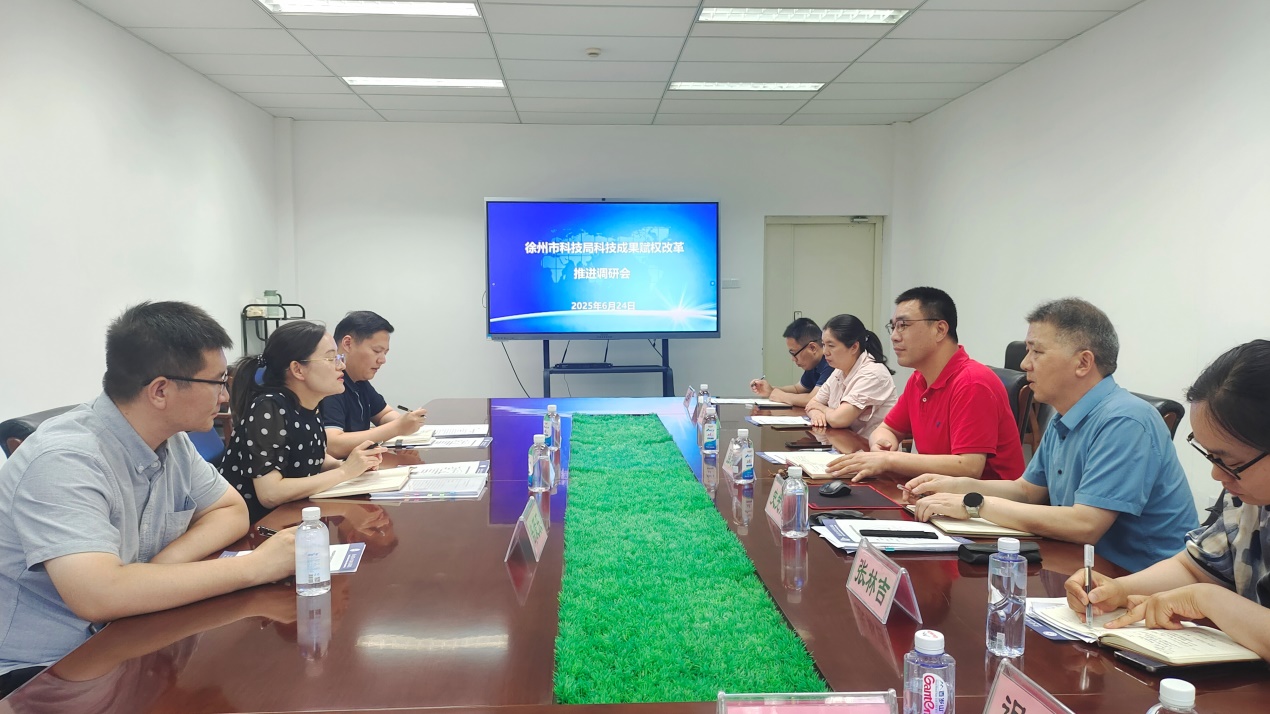 6月24日,徐州市科技局副局长王晓溪率调研组莅临我校专题调研职务科技成果赋权改革落实情况。科技局政策法规与监督评估处处长贾飞鹏、区域创新与成果转化处副处长尚爱乐陪同调研。校党委委员、副校长强承魁出席调研座谈会。